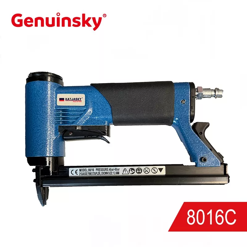 8016シリーズのエアステープラーには、主に8016Bエアファインクラウンステープラー、8016Cエアファインクラウンステープラー、8016LN(長い鼻)エアファインクラウンステープラーが含まれています。適切な爪Ga21、0.90x0.70mm、肩の距離12.7mm、爪の高さは6mm、8mm、10mm、13mm、16mm(1/4、5/16、3/8、1/2、5/8インチ)になります。