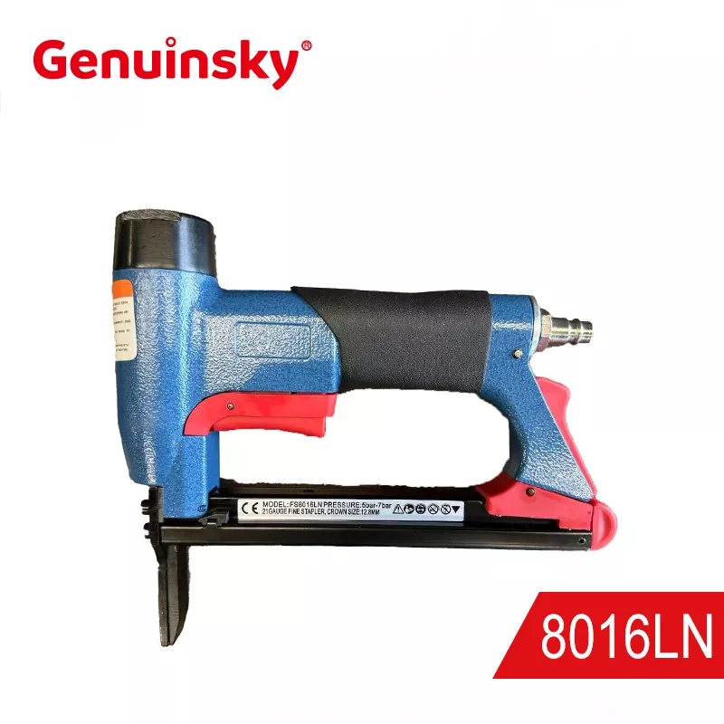 8016シリーズのエアステープラーには、主に8016Bエアファインクラウンステープラー、8016Cエアファインクラウンステープラー、8016LN(長い鼻)エアファインクラウンステープラーが含まれています。適切な爪Ga21、0.90x0.70mm、肩の距離12.7mm、爪の高さは6mm、8mm、10mm、13mm、16mm(1/4、5/16、3/8、1/2、5/8インチ)になります。