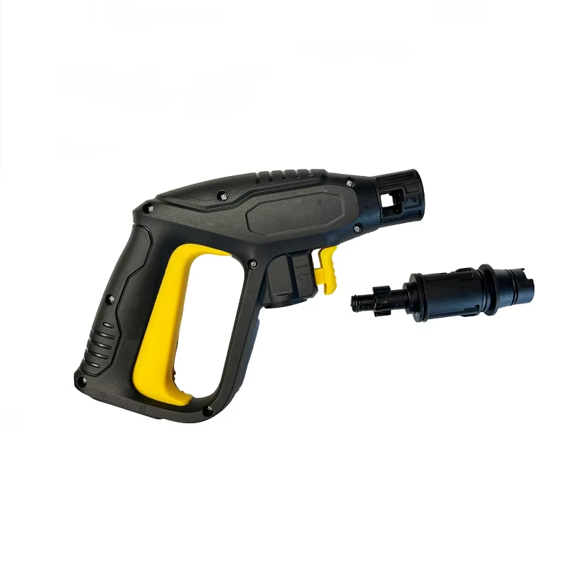 まず、この高圧洗浄ガンはケルヒャーブランドの高圧洗浄機K2~K7シリーズに適合します。 K2 と K3 は一般的に家庭用のエントリーレベルで使用され、K5 ~ K7 は一般的に商業専門分野で使用されます。本製品は適応範囲が広いため、互換性の問題を心配する必要はありません。外観から、このケルヒャー K2-K7 洗車本体用高圧洗浄機ガンは、黒と黄色のコントラストカラーデザインを採用しており、機能フィールドは黄色でマークされており、ユーザーが識別しやすいです。グリップは滑りにくい湾曲デザインを採用しており、手のひらの曲線によくフィットします。長時間使用しても疲れにくく、非力な作業者でも簡単に使用できます。