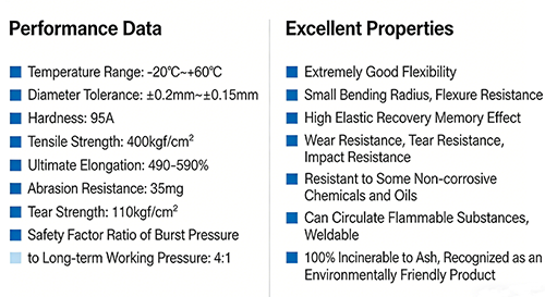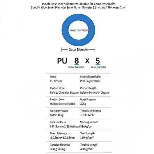 最後に、青、白、黒、赤などの色から選択できるため、ユーザーはさまざまな気道や機能に応じてパイプラインを区別するのに便利で、管理と使用がより便利で効率的です。工業製造生産ライン、実験室および精密機器、軽工業および包装産業の分野において、Genuinsky の高純度 PU 防爆エア ホースは、機器の安定した動作、生産の強力な保証を提供できます。高品質の原材料、精密技術、優れた性能の利点により、あらゆる種類の空気圧シナリオに理想的な選択肢です。