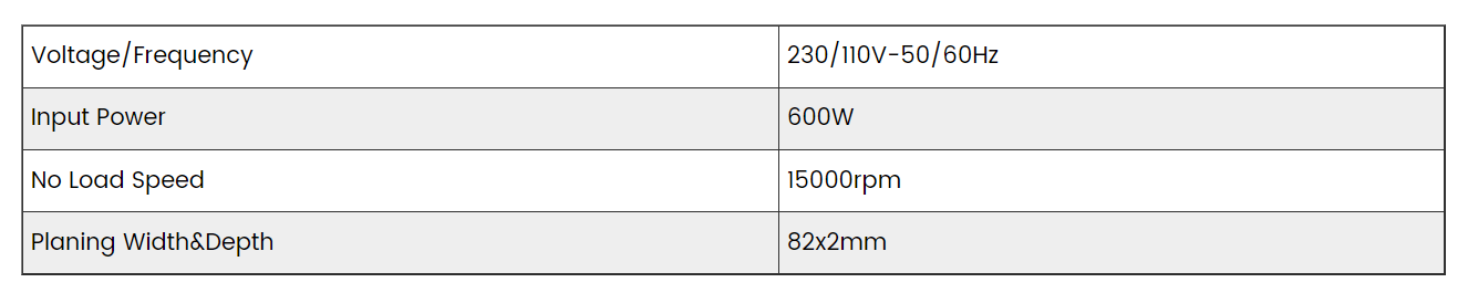 の82x2mm 電気カンナGenuinsky が立ち上げた製品は、木工生産と家の装飾の分野で効率的なアシスタントです。これらの分野で使用されるツールには、優れた性能と品質が求められます。電気カンナは600Wの強力なパワー、15000rpmの無負荷速度、82×2mmのカンナ仕様、230/110V-50/60Hzの幅広い電圧を備えています。これらの製品は、木工.