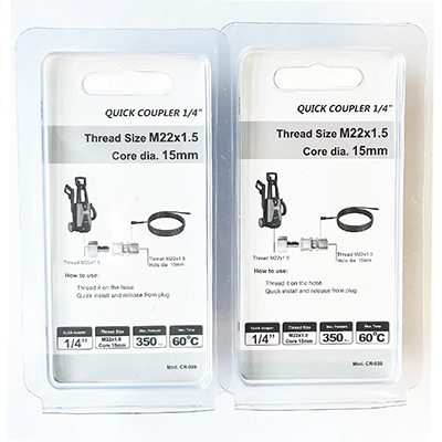 この2仕様の1/4カプラーはサイズ設計が異なります。 1つはM22×1.5、直径22mm、そのうちコアの直径は15mmです。もう1つはM14×1.5で直径14mmのテーパー穴です。 2 つのサイズの製品の設計は非常に正確で、対応する洗浄機に正確に適合し、高圧洗浄ガンのホース コネクターに使用できます。商品自体の素材は真鍮です。真鍮素材は耐食性に優れています。高圧洗浄作業では、多くの場合、湿気の多い環境に直面する必要があります。したがって、製品自体の耐食性は、多くの過酷な作業環境でも正常に機能します。同時に、真鍮は優れた延性と硬度を備えており、高圧水流においても製品自体の耐久性が衝撃に対しても維持され、壊れにくいため、水漏れが発生し、機器の交換コストが削減されます。一般的な使用シナリオには、家庭用クリーニング、産業用機器のクリーニング、または屋外施設のクリーニングが含まれます。これらの洗浄プロセス中に、取り付けまたは分解を迅速に実行できます。工具を使わずに接続作業を素早く完了できるため、作業効率が大幅に向上し、時間を節約できます。同時に、この 2 つの仕様の 1/4 カプラーのサイズも非常に適切です。ユーザーは片手で簡単かつ柔軟に接続操作を完了できます。
